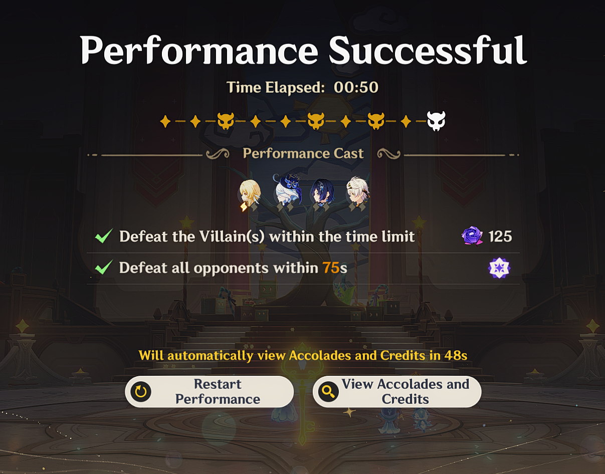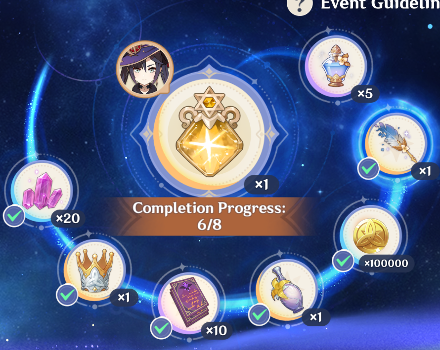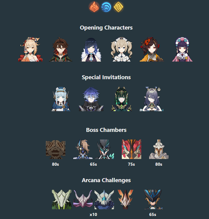 first half 4 stars are fischl, sethos and ifasecond half 4 stars are illuga, gorou and aino.