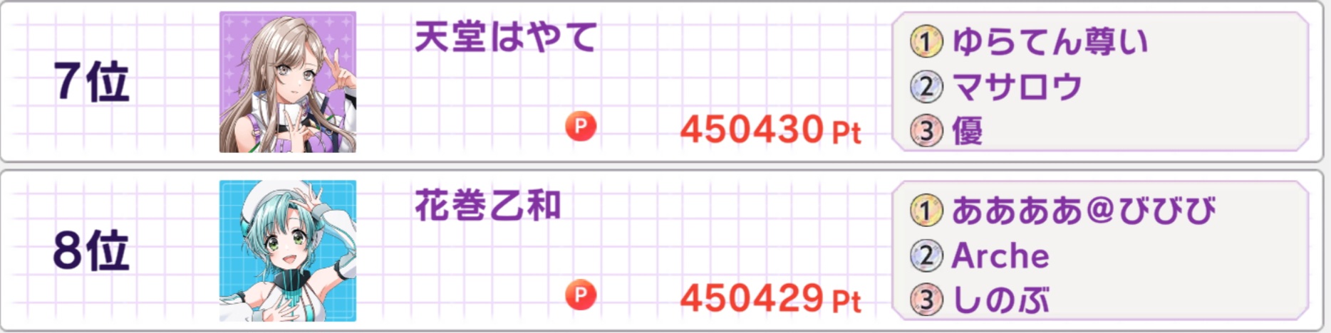 The whale (dogpoo) is now saying he only decided to dump into Hayate because Temma posted about her around rank 6 a few days ago and Temma only posted it because she was in a visible rank, so I guess in a way every f2p and minnow also helped even though Haya-coco get no dolphins. What a heartwarming story! Nevertheless Donuts need to figure out how to polish this shit because right now it just doesn't feel right in terms of player experience.