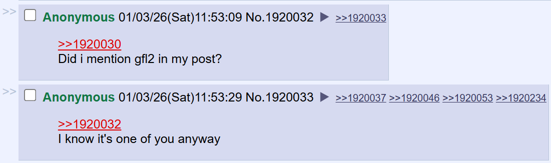 >>1922161This. /gfg/ is a gigantic eye opener and I'm very glad that anons put in the effort to inform. I've been saved from wasting hundreds of hours on cuckshit, and it's all thanks to anonsThe only thing I didn't need anons to convince me not to play was GFL2, as I was a GFL1fag and my dolls were butchered and continue to be butchered in what was supposed to be a continuation to my paradise gacha, though I've heard the last parts of GFL1's story were already giga butcheredGFL truly peaked when our PMC fought the military, and been downhill since. Them deciding to bring back the civilian names of the dolls already in GFL1 was the first and last nail I needed to drop the game