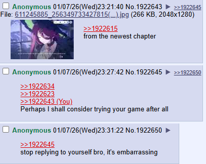 >talk shit about harem game>surprised when /harem game central/ makes fun of him