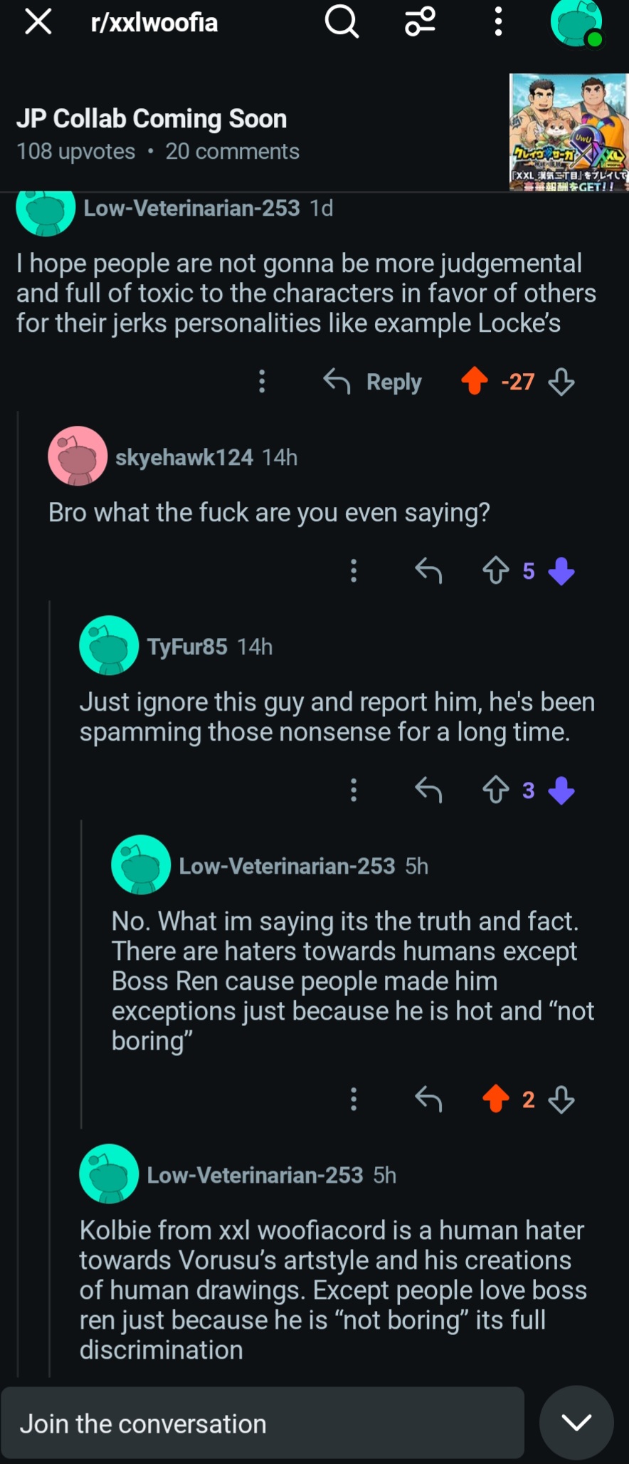 >>1955687Anon, you and I are both well aware that every man in Woofia is a slut who'd spread their legs at a moment's notice for any other guy.