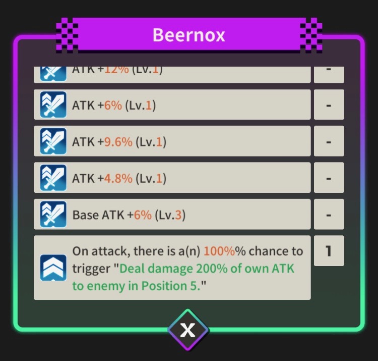 >>1927151Tyrantino can do double AoE team wipe while Code:B can dump nuke with defense buff twice. Fire can do double Covetous Wolf EX skills to cripple or wipe enemy team. Wood can do double Yuhyun EX with the buff from defense.Boss Ren's buff is honestly overkill for current content.