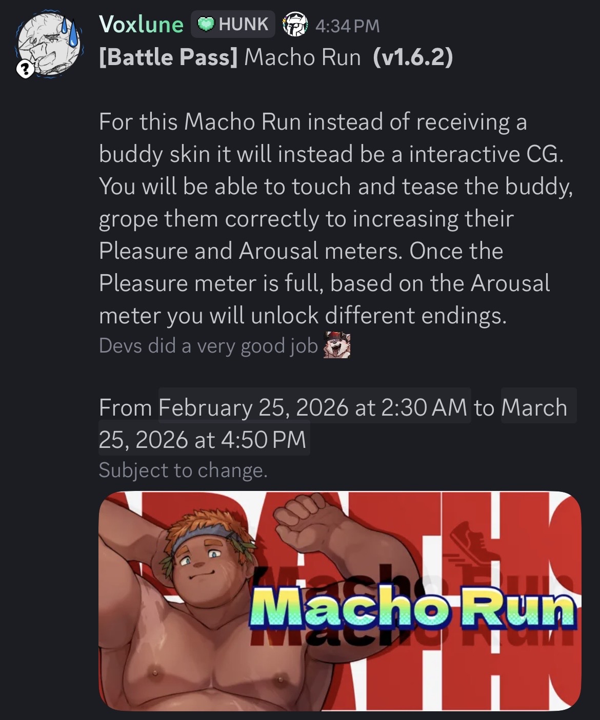 Hook Up was fun at launch but now it’s just whatever to me. It would be cool if it was more interactive like the old Touch and Tease games being able to rub pecs or jerk them off but actually have some physics or sense of weight to it. Don’t know much about live2d but it probably would be a lot of work to do that though maybe if they ever have a self insert POV cg maybe they could do that then.