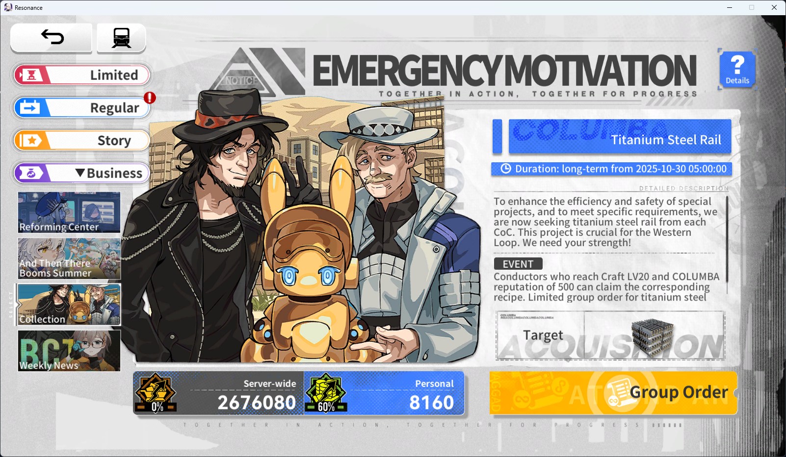 Previous: >>553572580 Comfy train simulator with business management, Sawano music, card based combat and erotic vixens tempting you with their armpits, feet and tentacles.Available on mobile and PC via steam or their client from their website.https://resonance.ujoygames.com/>Useful linksTier listJP: https://gamerch.com/resonance/869911Teams databaseJP: https://gamerch.com/resonance/877307EN: https://www.prydwen.gg/resonance-solstice/teams-database/WikiJP: https://resonance.wikiru.jp/CN: https://wiki.biligame.com/resonanceMarket price toolhttps://www.resonomics.app/overview>MiscA Day in the Life of the Conductor - Resonance special animation 1-3https://www.youtube.com/watch?v=-uc2K2tZCPohttps://www.youtube.com/watch?v=n4eTWLJplVMhttps://www.youtube.com/watch?v=zhYGxzEJuP4>Codes (Profile > Settings > Other)I don't know, check 'that' place weekly