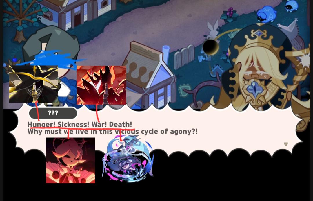 So Dark Enchantress is finally dead, all the other Beasts are dead, the Cookies of Darkness have either chosen to go their own path with potential redemption arcs or are too broken without their leader to be a unified threat anymore, and the war is over...except that Shadow Milk Cookie got away with a shard of the Ultimate Cookie and has become a multiversal cancer that even Timekeeper is struggling with, Sugar Swan is probably too weakened from this war to call upon to help us hunt the fucker down again, and the Ultimate Cookie as a whole is still at large (unless First Milk really does end up redeeming the damn thing).I want to say we won more than we lost, but it doesn't really feel like it given we went from a potential multiversal crisis to a DEFINITIVE multiversal crisis and nobody is in any shape right now to go hunting for whatever Shadow Milk has become.