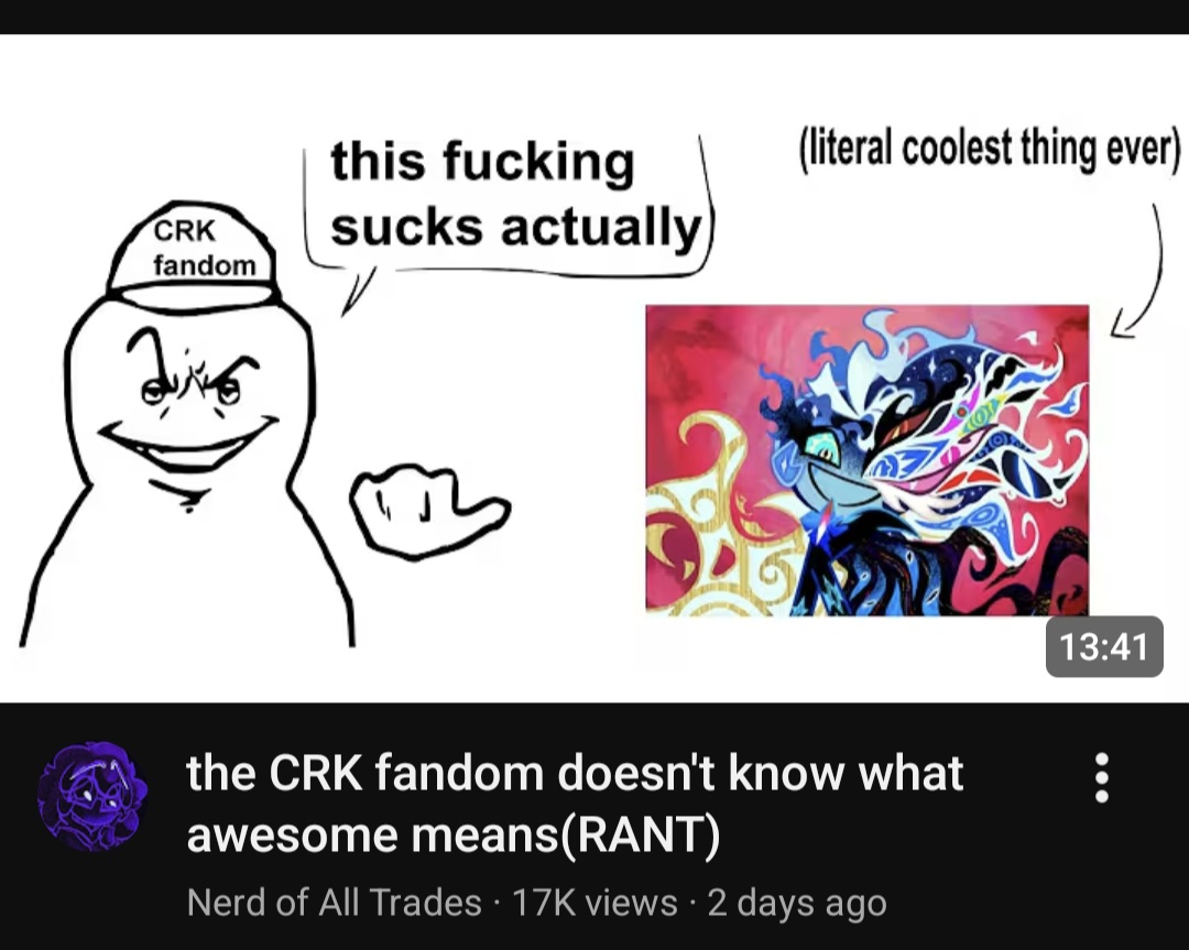 I don't know who CG5 is and why did Devsis commissioned a song to him, but Crumbled Crown was painfully mid at best and the not recycled original animation of the video was worse, I don't know why every comment I read glaze that shit as the best thing ever made, Glittering Dreams & Transfigure were leagues SUPERIOR than Crumbled Crown