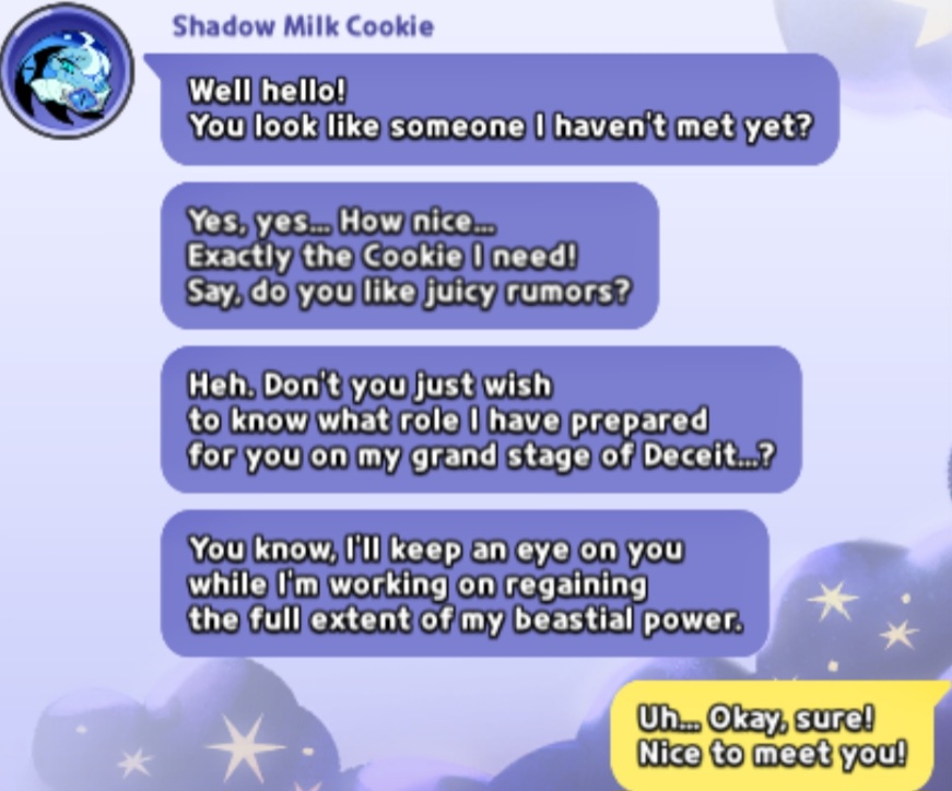 From time to time I wish I had cleaner portraits in the Cookies menuAnd for Hollyberry and Vanilla to have their civil costumes from when they didn't reveal they are the Ancient heroesAnd Shadow Milk Animatronic boss as a costume too