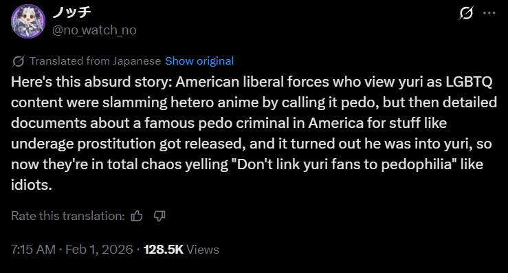 I can't thank Epstein enough, thanks to him everyone is going against yuriniggers and lolicons are the one taking the lead against them KEK