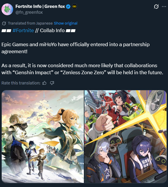 [Good news]Genshin and ZZZ might be whored out to Fortnite as well.
