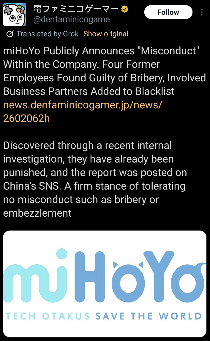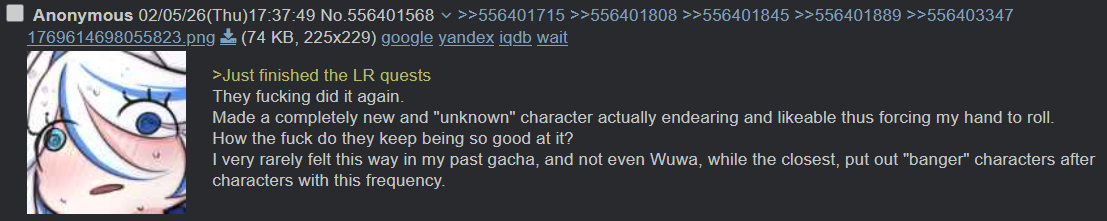 Your source of the juiciest dramas about gacha games. Anything goes---your sentiment about the gacha industry, schizo takes, conspiracy theories, MTL screenshots from obscure Chinese forums, or just random gacha related topics that don't fit in a specific general.