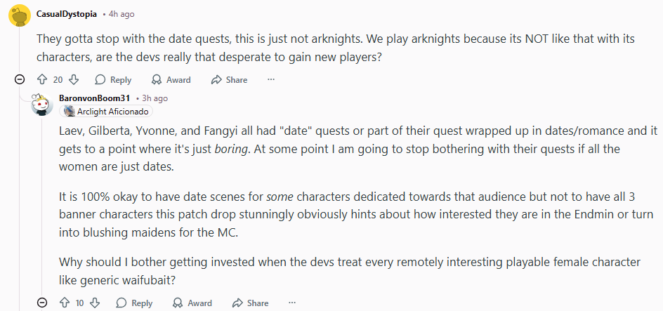 Lol, just that? Endfield has the worst writing in any gacha. ML quests are only saving grace