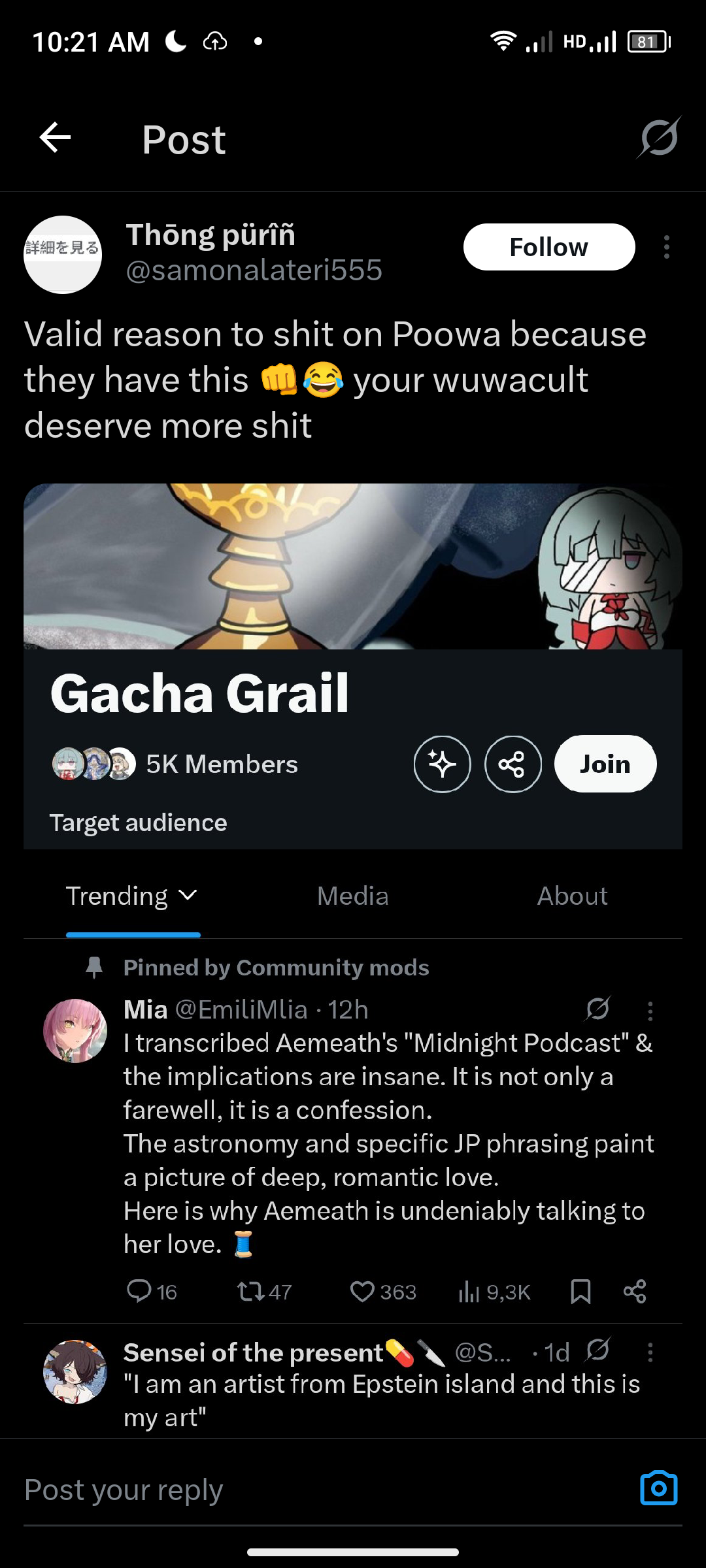 >Gacha Grail jeets, who are literal pedophiles themselves, tried to frame one of their twitter enemies as a pedo by larping as a 17 year old to girl to implicate him as a sexpest>Turns out the dude is only 18 years old himself>Now Grailjeets are trying to unironically argue that an 18 year old dating a 17 year old is pedophilia>Dude in question came out with receipts, clearing his name, all they can do is just double down on their retardation>He's now taking legal action against themThis could finally get Gacha Grail banned, you love to see it