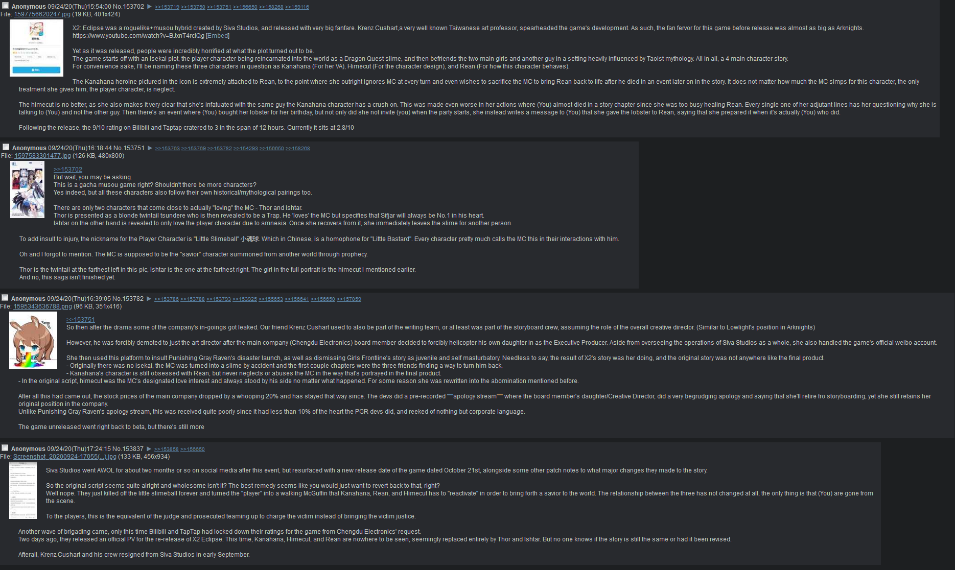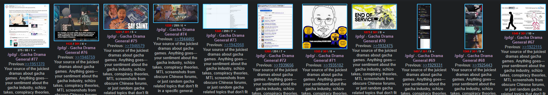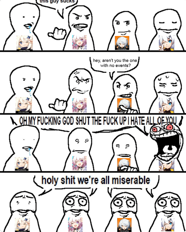 Previous:>>1951370Your source of the juiciest dramas about gacha games. Anything goes---your sentiment about the gacha industry, schizo takes, conspiracy theories, MTL screenshots from obscure Chinese forums, or just random gacha related topics that don't fit in a specific general.