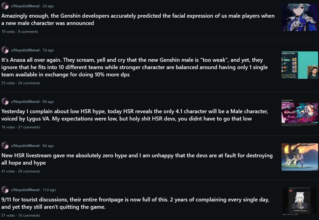 >Wuwa is getting shit on everywhere for being ~120gb for the past 2 weeks>Never hear anyone say a single word about HSR which is a 10 times smaller game, permamently removes old content from your drive (up to 6gb a time) when events end and still is 100 fucking gigabytesDoes no one new play this game or what?