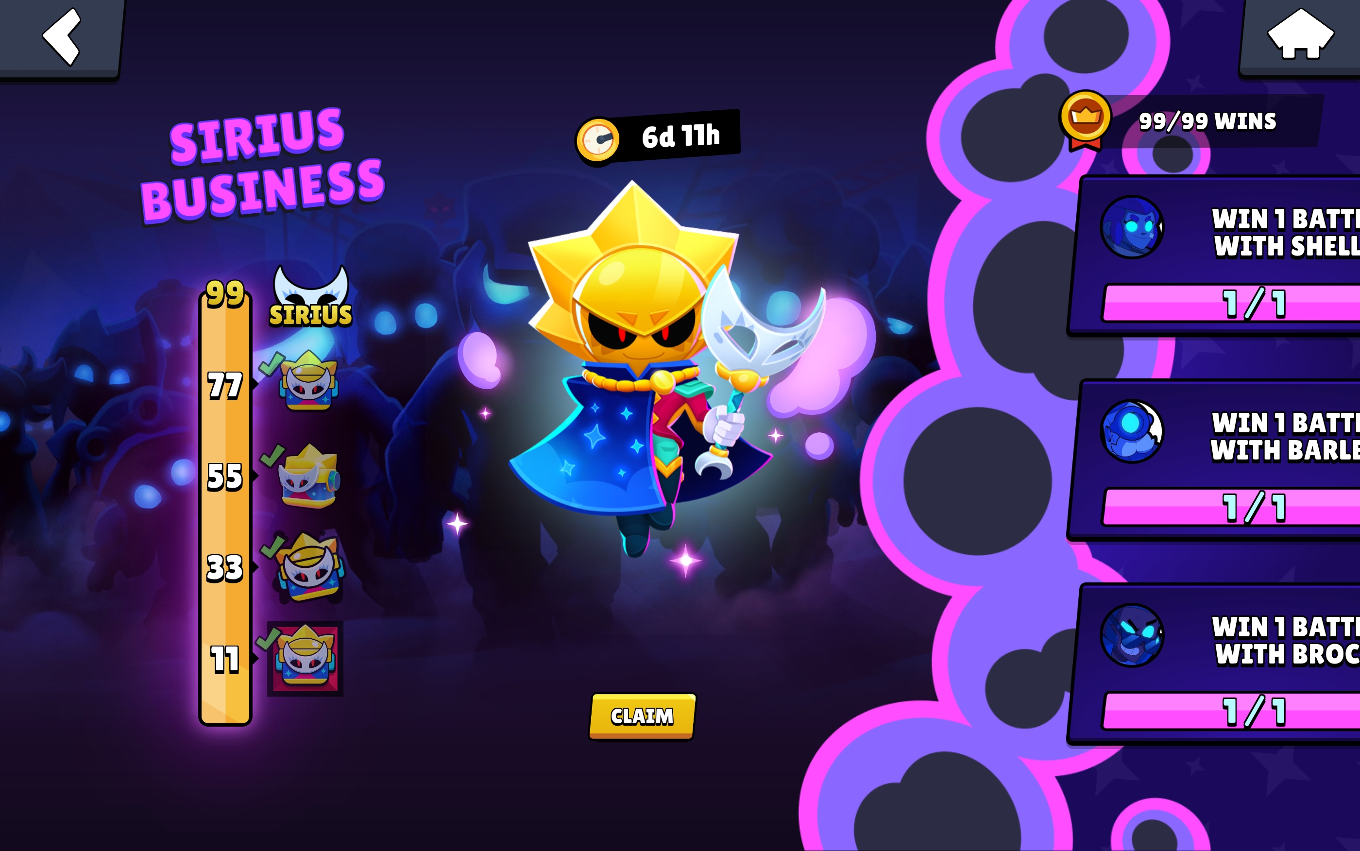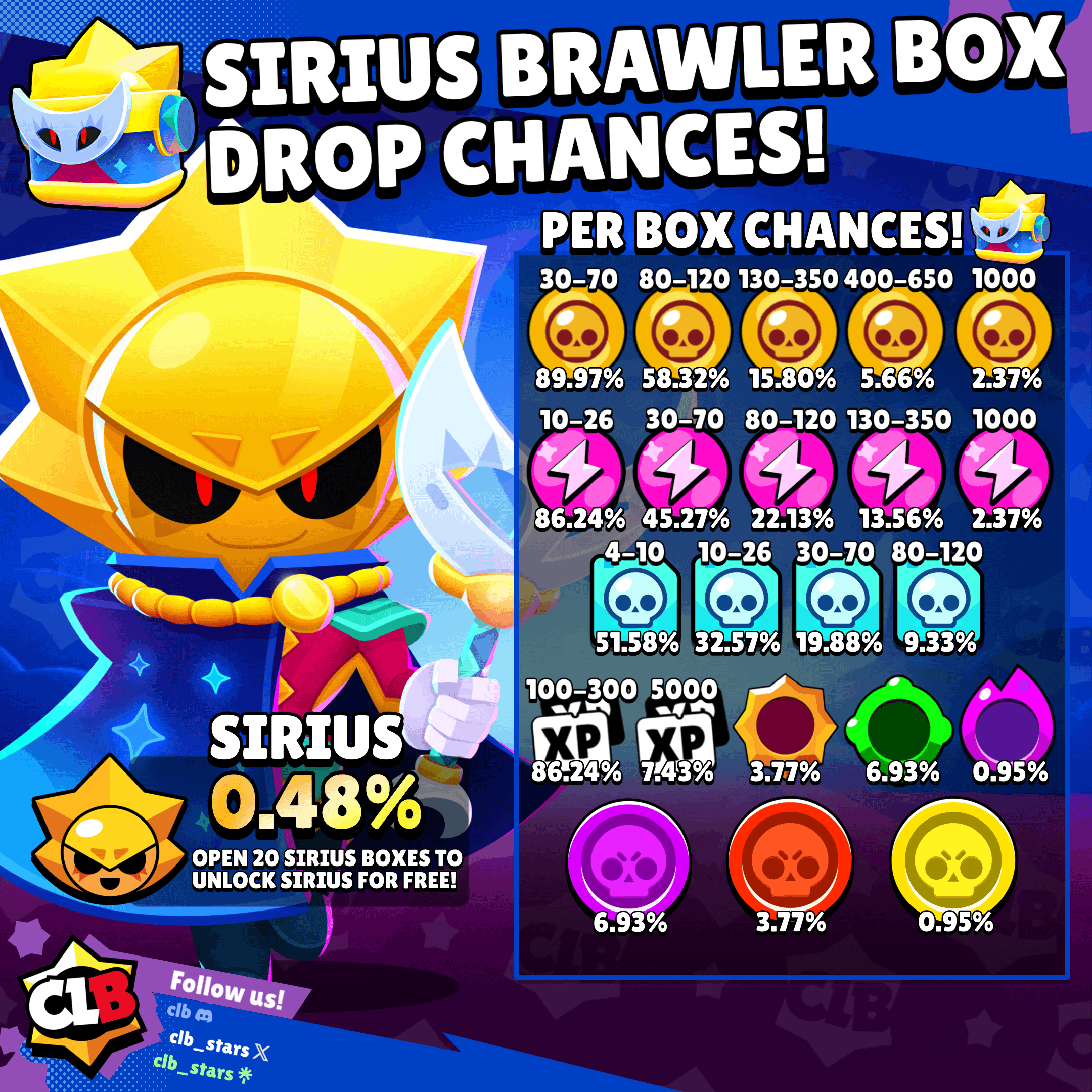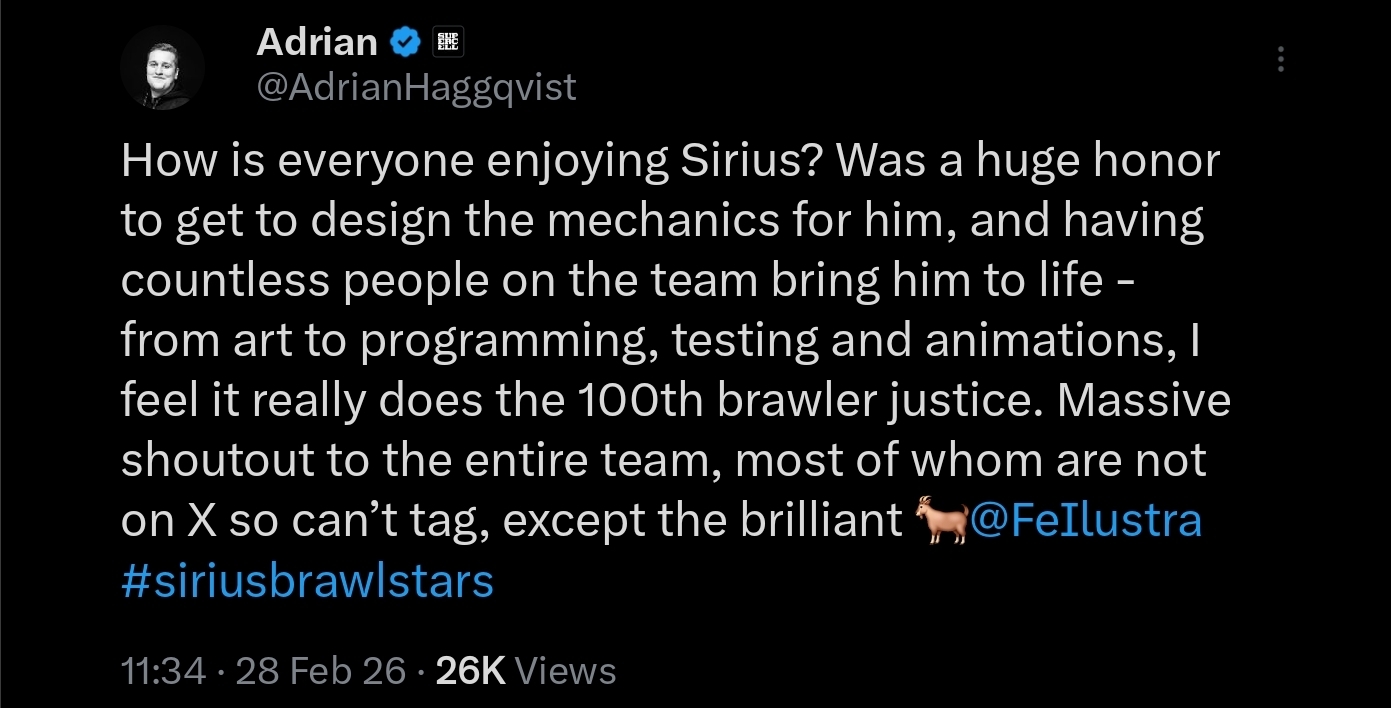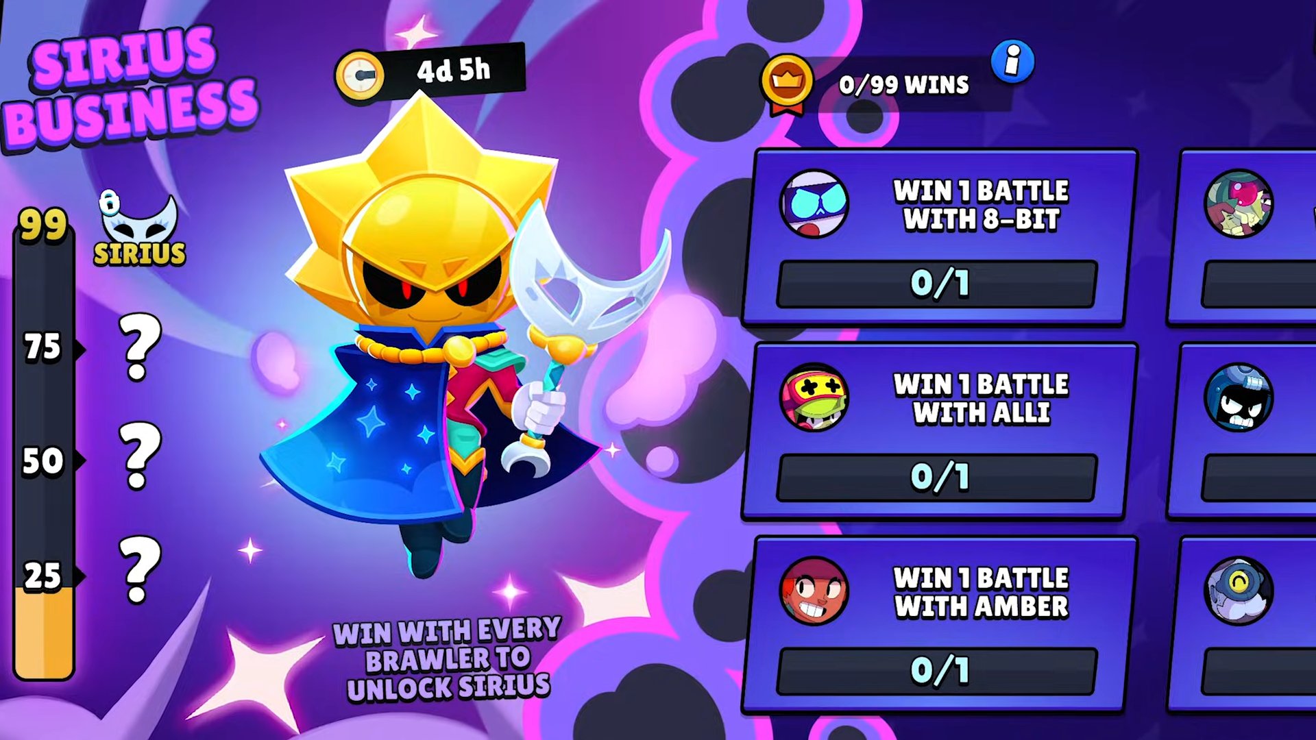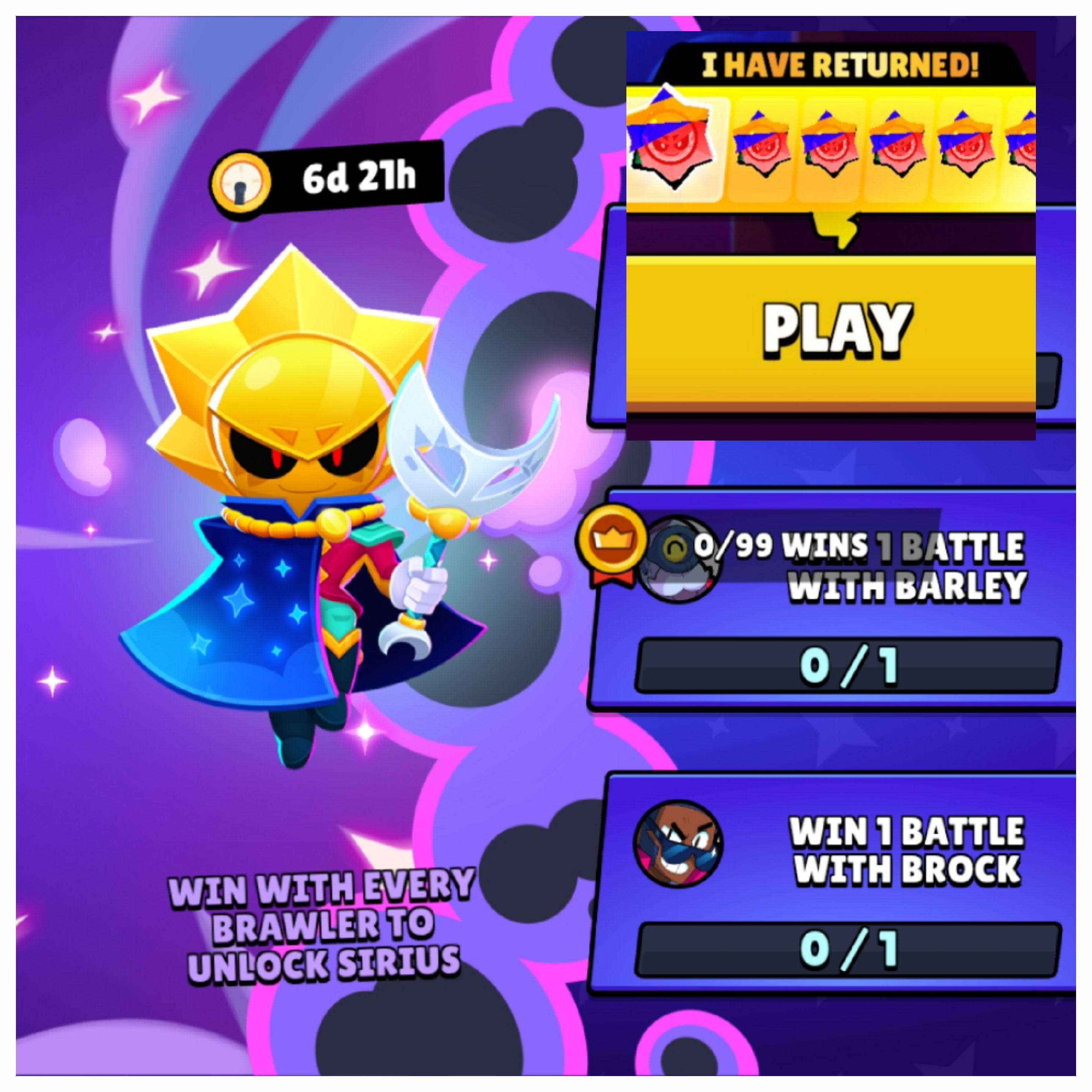 Sirius sneak peeks are out. It's confirmed. You will be able to get him for free if you already own the other 99 other brawlers and get a win with each one of them. If you don't have all brawlers unlocked, well, sucks to be you. There will also still be the regular new brawler-themed box event they usually do.