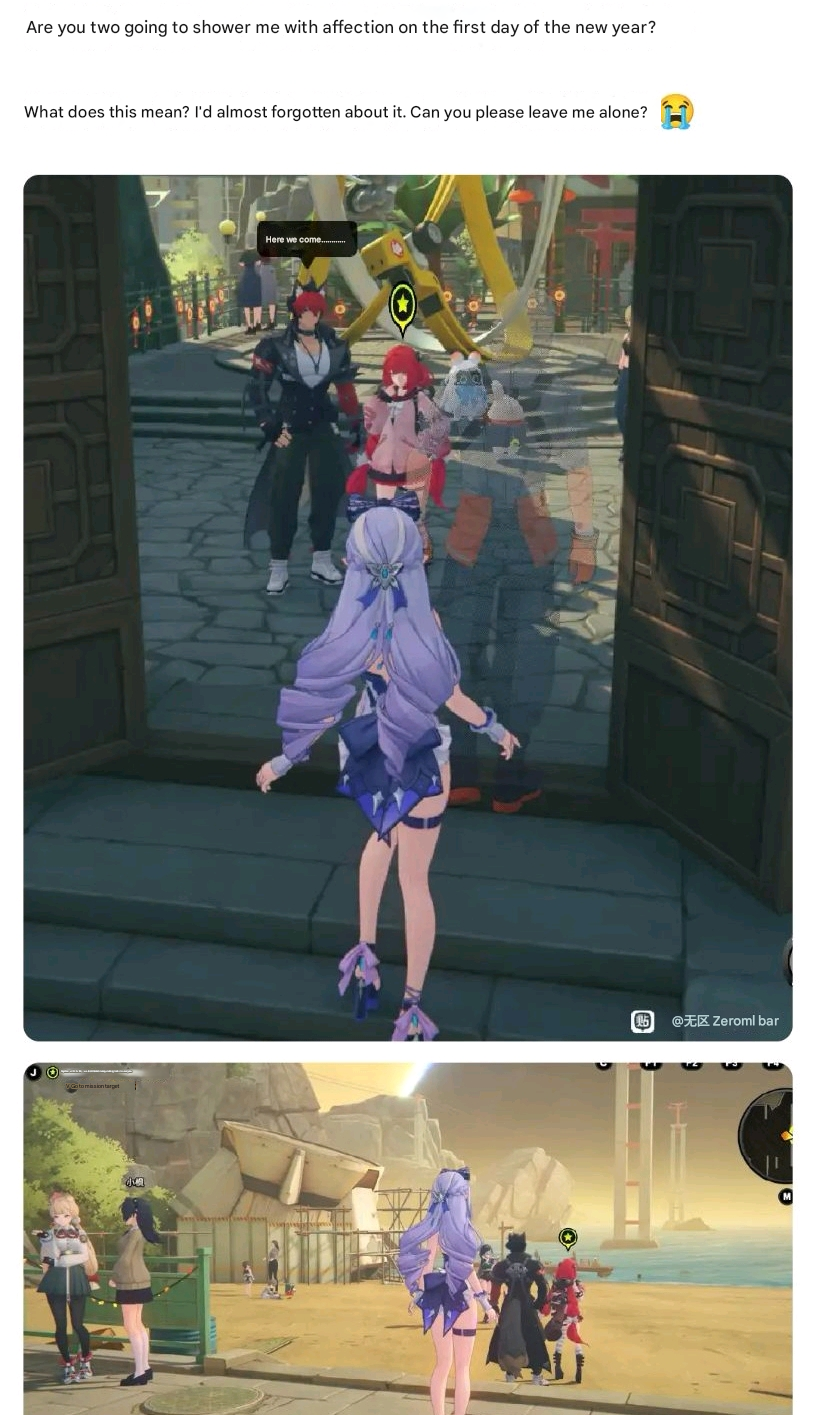 Listen pal, when I'm playing a gacha, at the very least I'm a positive number in their KPI, and at most I'm a paying customerIf you want to keep me, you have to play by the rules all males like: no male competition, gigantic female offer, gigantic demand for (You). That is so because gachas, like galges, are supposed to be escapist paradisesWhen you add a male to your gacha, he won't be a gigabro W40K type of dude whom you can view as a friend/bro, he'll be a twink that always, ALWAYS appeals to 3DPD hole preferences somehow. If that's the option, then it's better to go with no males. I'll get my bro experience playing a manly game, of which there are plenty, so let me get my waifu harem experience in peaceIf you won't let me enjoy my escapism, then that's alright, a new game will come that'll cater more to me than yours, and EoS will be your unavoidable fate, because you decided to spite your players/customersOn a side note, it amazes me that it's 2026 and there's not a single released 3D gacha with handholding. It's as if none of these 3D gachas are made by men