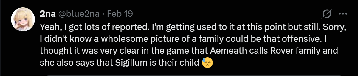Since you fucking faggots like to gossip about e-celebs let me get you something juicy, one of the biggest NSFW creators of WuWa is starting to ship characters among themselves without rover and say he is gonna made porn animation about Aalto x Galbrena, so if anyone needed more confirmation of WuWa and their community becoming genshin 2.0 here you have it:https://x.com/AbilfloridaArts/status/2024036609155555396