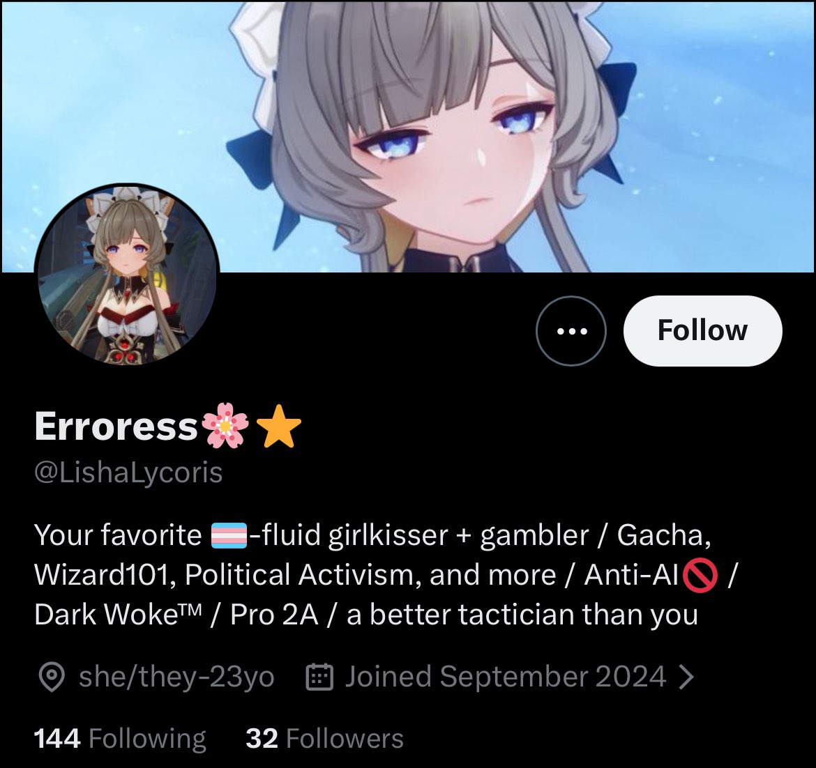 >>1961493>Cuck in HSR>Deadbeat absent dad in GenshinThere is no salvation for this loser