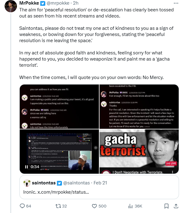 >>1961290not a tldr>tectone makes wuwa cult and gacha podcast late 2024 or early 2025>hasan rapes tectone over some shit involving his rapist father and it ruins his gacha content somehow so he does right wing grifting to salvage his community>wuwa cult slowly dissipates>during the cult however and after it phased out, tectone brought his son saint in to be the next in line once he was gone>saint continues glazing wuwa and shitting on anything not wuwa, but mostly mihoyo games, yet also went into reactionslop by shitting on small time literal who's or other decent sized content creators videos>AKE releases>makes nearly 30 vids shitting on it in 2 weeks>complete random shits on him and makes some highschool tier thumbnails>saint goes ballistic>some other cc's from the old wuwa cult aren't in saint's new attempt to make a wuwa cult like his father so when he tried to manipulate them to follow his every word they refused, said people being arikado, blazeon, captain cabinetz legionzgaming and some others>random on twitter drops a doc of his server being racist and having entire channels dedicated to collecting what saintontas and his cult calls glue to eventually shit on people if they ever cross them>saint tries to divert the heat by shitting on pokke>after 30+ vids and thousands of mentions in saints nearly 2k slop vids he responds with a bait vid to make him react>saint bites>everyone shits on him and laughs, even the ones from the old gacha cult>saint attacks everyone>lawsuit happens cause saint deserves it>trying to save face still by attacking other people but likely his ex girlfriend who he's decided to attack the hardest out of all thisYou'd think this was pokke vs saint but somehow it literally started cause of AKE and was supposed to be sub 10k content creator vs saint but turned into ex gf vs saint despite quite literally dealing with a lawsuit with another cc when he should be watching what he says that could make him lose his case