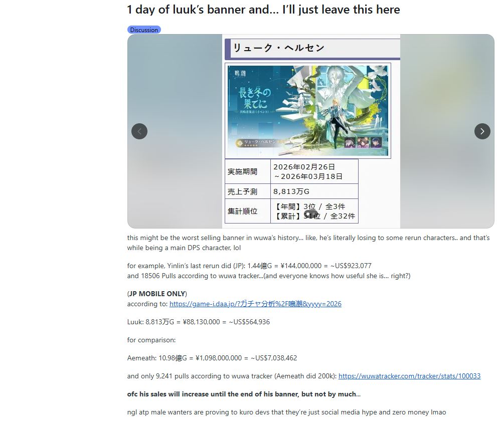 Your source of the juiciest dramas about gacha games. Anything goes---your sentiment about the gacha industry, schizo takes, conspiracy theories, MTL screenshots from obscure Chinese forums, or just random gacha related topics that don't fit in a specific general.
