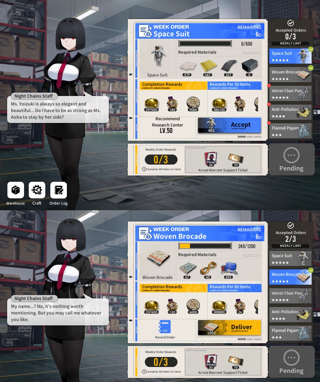 Lvl 59 prison... I can see the end soon...i'm assuming once I reach the fabled 60, I focus on weekly orders and selling products outside instead of nornal orders, right? I never have enough silk for the brocades though desu