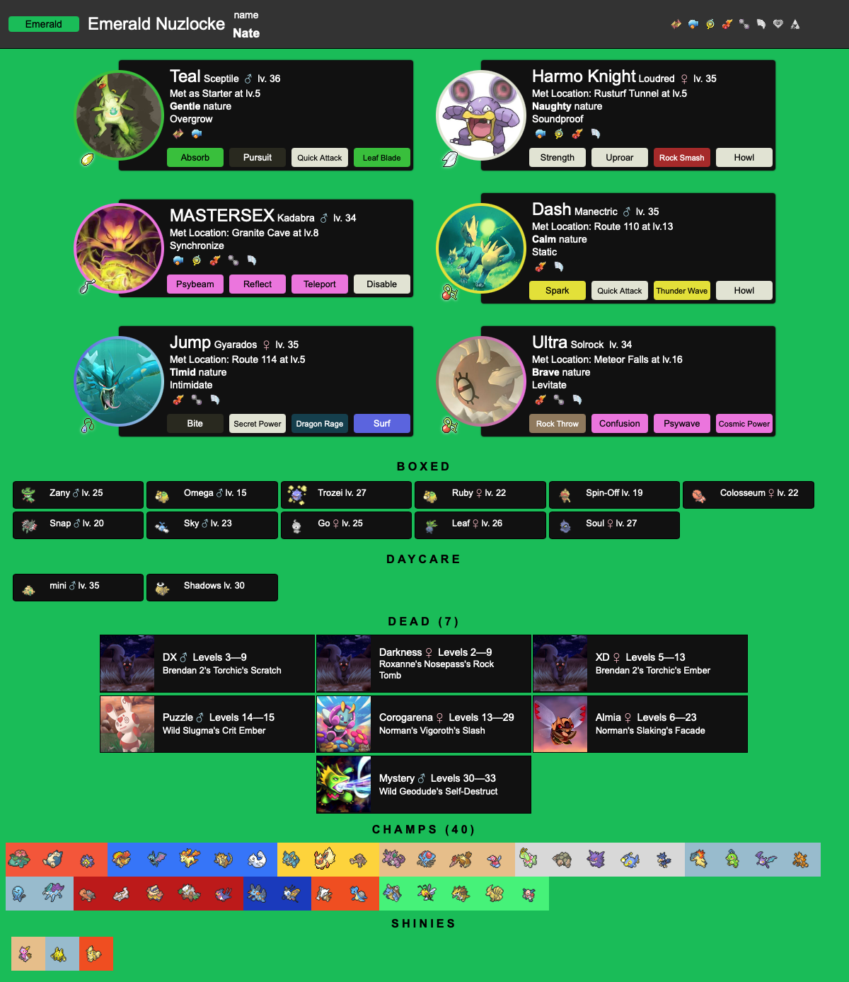 Twin legends edition>What are you running?>How are you running it?>How's your run going?>Are you doing a weird ruleset? And if so, what is it?>/nuz/ resourcesMostly outdated, but if I add something new it will have (Updated) somewhere in it. Let me know if there's something that needs updated if you have something to replace it with.>Nuzlocke infohttps://pastebin.com/8b3rHGuX>Nuzlocke generatorhttps://nuzlocke-generator.herokuapp.com/http://nuzlocke-generator.com/Comment too long. Click here to view the full text.