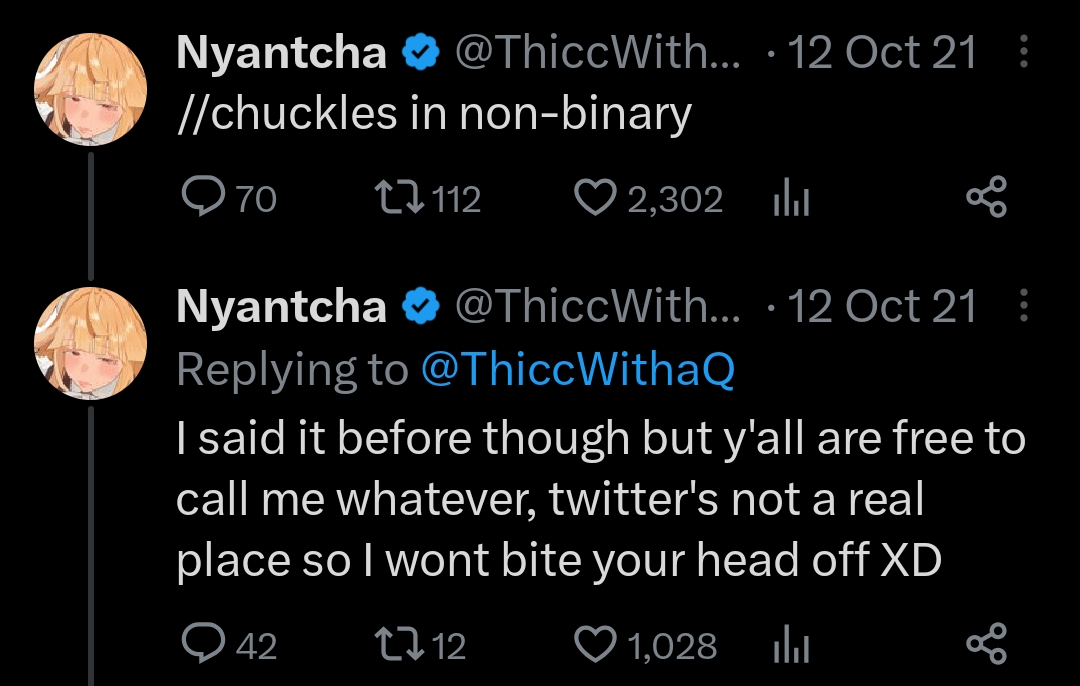 Mandatory reminder that Nyantcha is an actual gay nigger from Africa pretending to be a white woman for easy upboats.