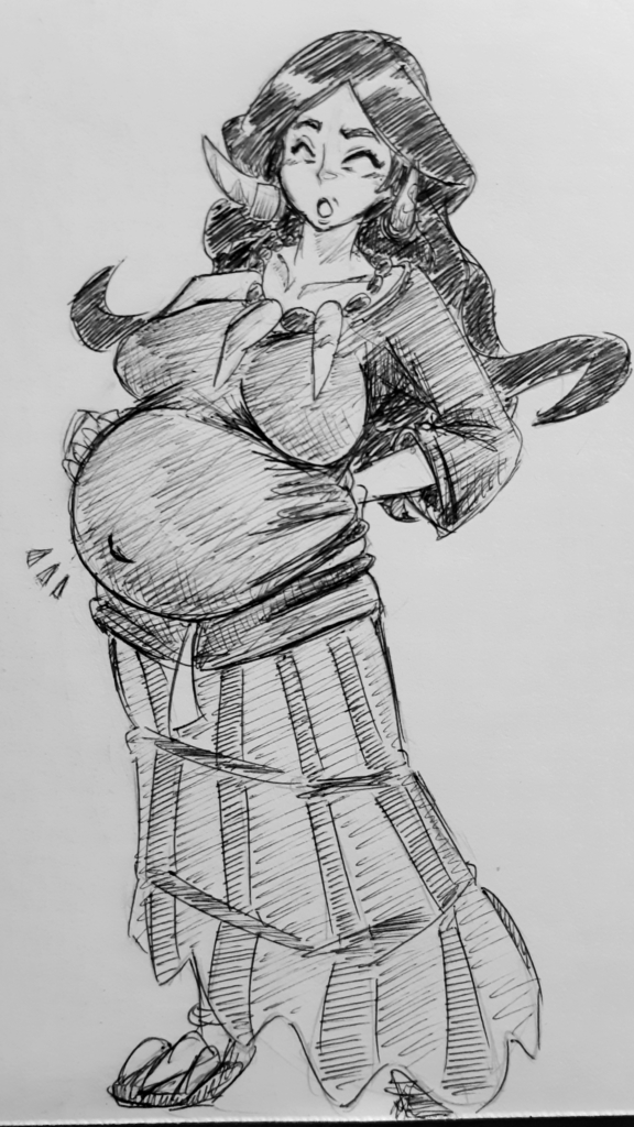>>58380985It's the dress. She's the only one that wears a loose dress that suits a belly.Scratch that, it's her whole design. She's got wild woman energy, a primal aesthetic that fits the 'makes lots of babies' vibe.