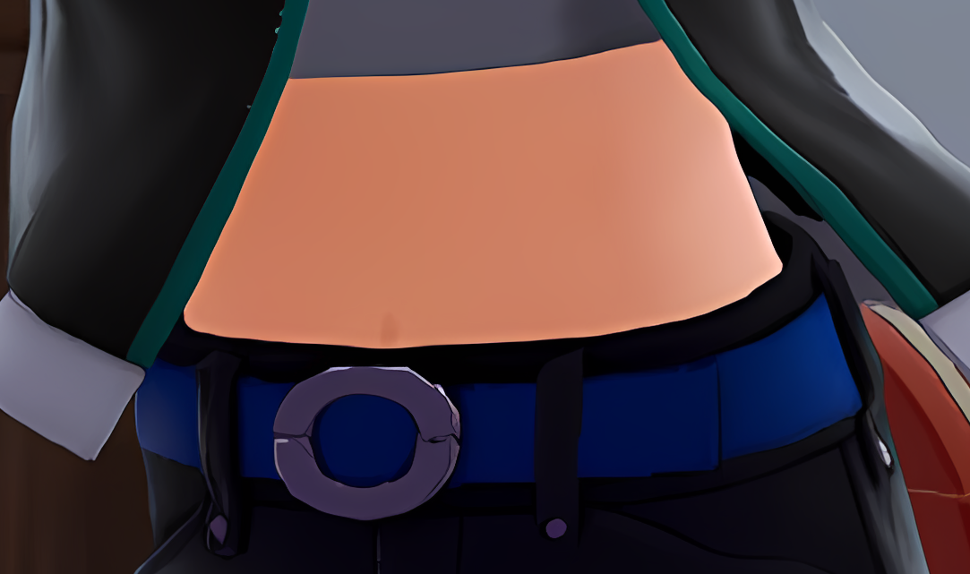>>58392883there is a navel, its subtle though. It right above the pants. You see it better under certain lighting conditionsI ai upscaled this image from the other thread so its better to see