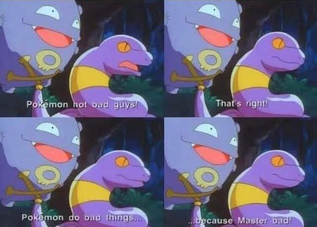 >>58407184>This completely shits on the idea of Pokémon and People making eachother better, are the writers retarded?To be desu, they already did that a long time ago when they hammered in the lore that Pokeballs actually weaken the upper bounds of a pokemon's strength. I think it was Gen 4 that first dropped this truth bomb.That's why if your MC uses a pokeball, he's not a true munchkin.