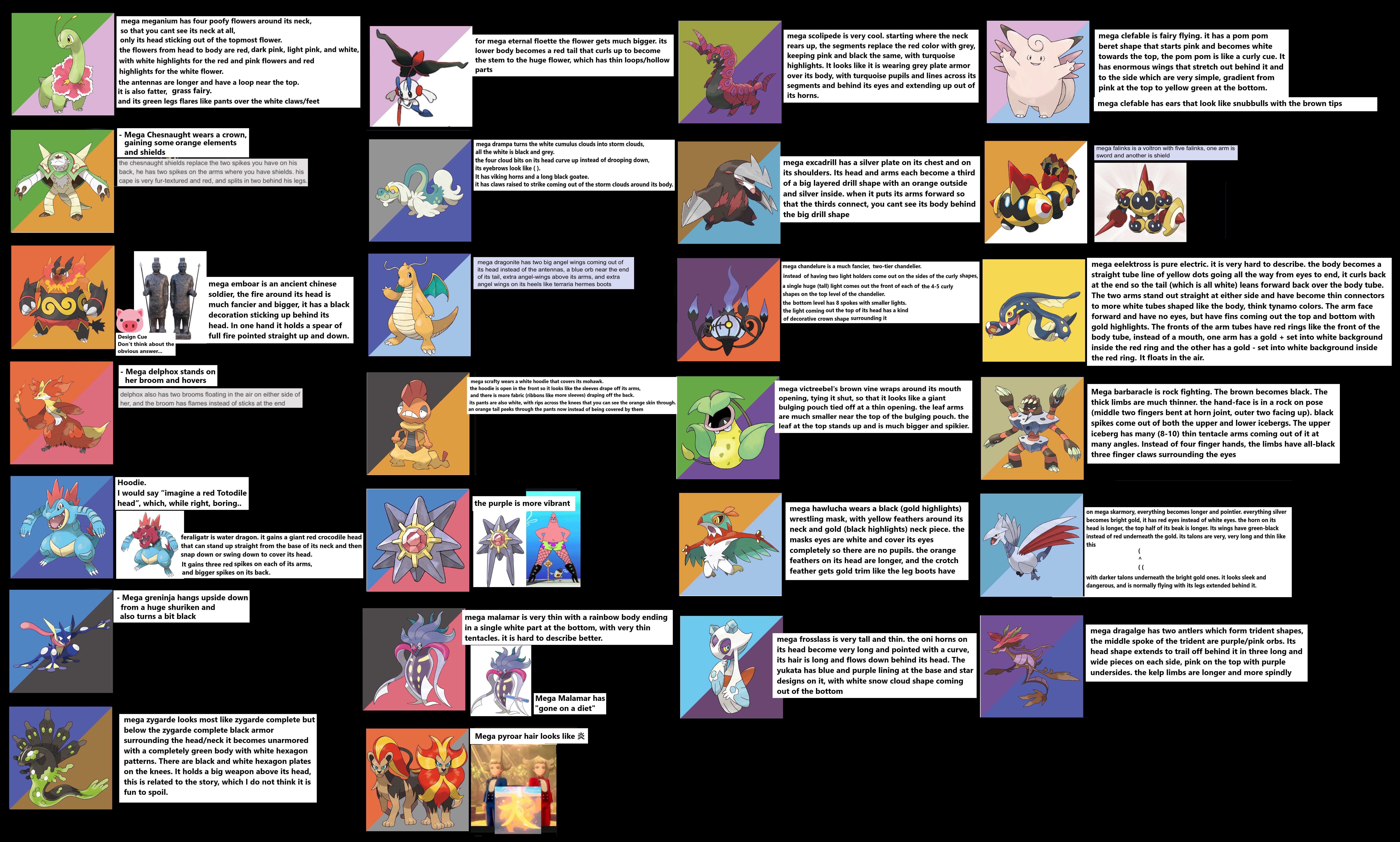 >>58411633That wasn't necessarily true though, Gardevoir looks more regal rather than stronger looking, Mega Khangaskan is very gimmicky and soulful, Mewtwo Y..., Ampharos they just gave him a cool wig, Mega Manectric..., Mega Absol also leans in more in it's Guardian angel thematic that warns people of catastrophic events, etcGranted, there's a lot more funnier or gimmicky designs this time around
