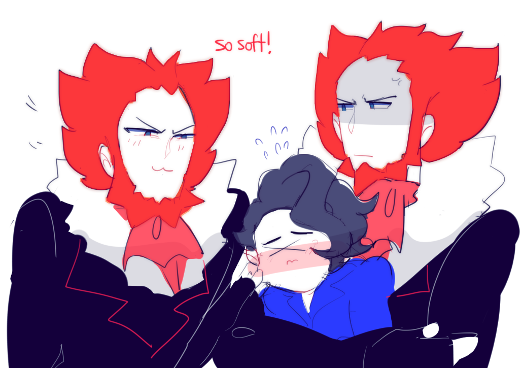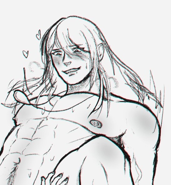 >Still thinking about that screenshot>Kissing the back of his neck as you climb over himAlso his hair looks like a hand, perfect for pushing him down