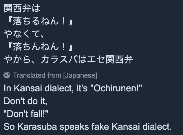 >>58436460Please share your findings if you do play in Japanese, nonna! I have a japanese friend who told me all about dialects and how important they are as a selling point for a character. Rika and Kieran are extremely popular also due in part to their dialect. Really makes me want to research more about it.Same nonna, same, I’m rewriting the entire lore between him and my OC but whatever the fuck he is is infinitely better than what we all thought he’d be. I seriously can’t get over him faking a Kansai dialect. That’s so cute.