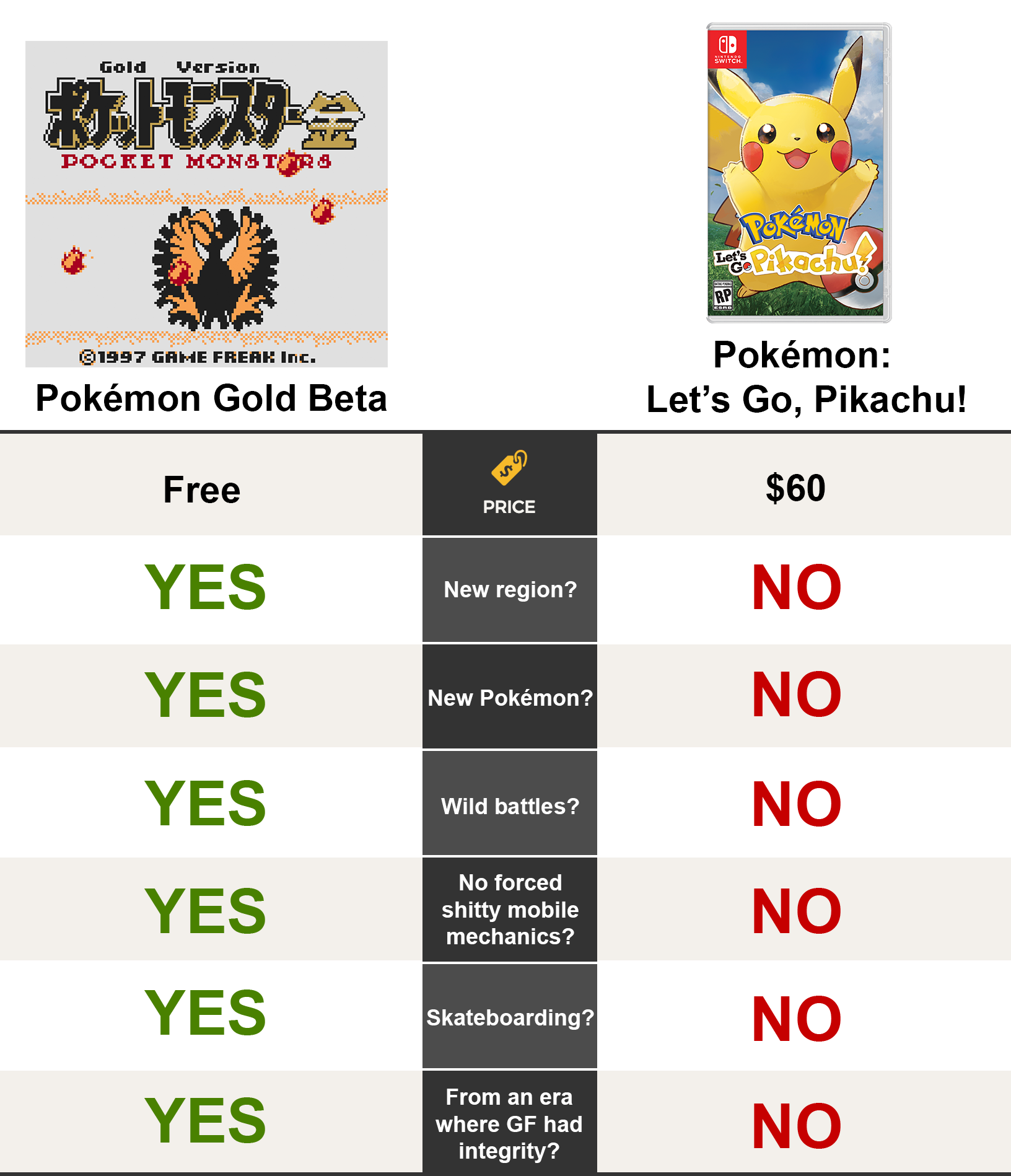 >>58439481>LGPE was promisingI genuinely wonder what level of brain damage somebody has to have to think this. The board's reaction to LGPE's concept being leaked was that it was an April Fools' joke too exaggerated to be funny, and then depression and bewilderment when it was actually announced, and the only reason the board didn't descend into a pure pit of doomerism then was because Spaceworld leaked at the same time.