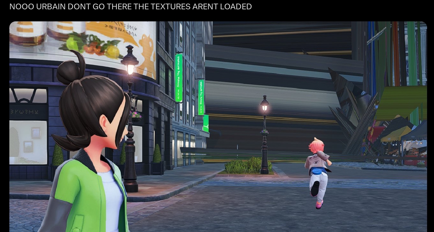 >>58440371Spot the mistakes on this:>backgroundPoorly blockaded street where to blockade it, the devs just stacked random 3D objects with that same ugly generic texture that they pasted all over the "city". The blockade is stacked in the worst way possible, barely believable, while games like the new Digimon will have crowds, police blockades, army checkpoints, and other believable barriers to entry rather than Fallout blobs of debris.>the disgusting ugly buildingLook at the horrible contrast between the low resolution png that is the texture of the buildings, and how it is copy pasted all overm and how terribly it contrasts to the models used for characters and the ground.>the human ladderIn Z-A, the interiors of buildings are still not modelled. So for our character to reach the rooftop on a building where they did not set up a ladder, they instead stacked 7 NPCs doing Sun & Moon's Hop "Excited" emote, thinking this would be a joke. Coincidentally, it makes the characters on the human ladder (all wearing the same and having no expression) look like a human ladder.>the character climbingThere is a grotesque feet stretching between the player character and the gag "human ladder".They tried to pass this as a 'so bad it is good' joke, instead it is one of the greatest pieces of shit and an atrocity commited to game design. The entire group of animators and the game director to this garbage need to be fired over this.This is just the tip of the iceberg.