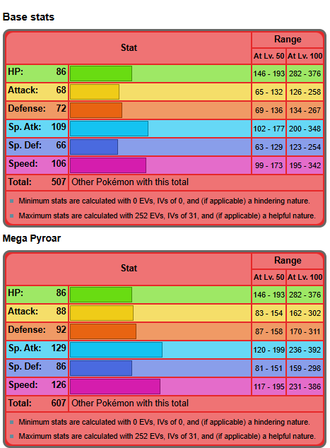 it's already bad enough megas give worthless stats. like excadrill gaining +10 sp.atk for whatever reason??? when it has 160 atk. but in pyroars case of being extremely bad to begin with they didn't choose to fix it, not even decide it's identity between being physical or special