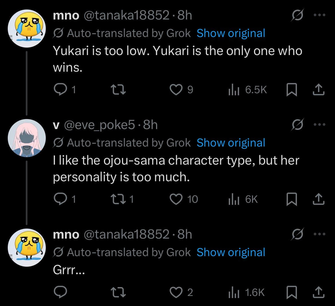 >>58435784We get it, you posted your tier list and used Japanese characters to make it look like Japan hates her. Now stop shilling your twitter account.