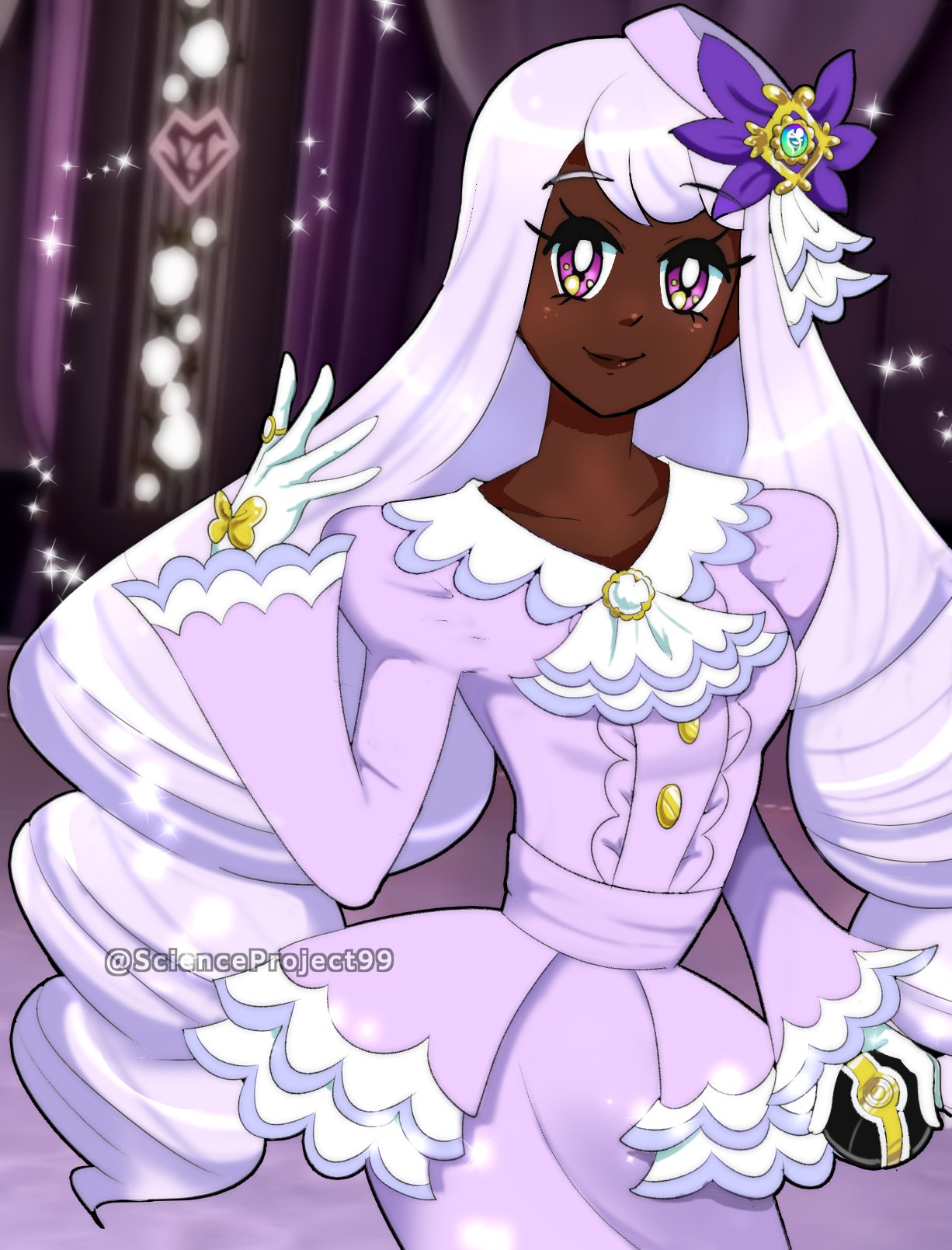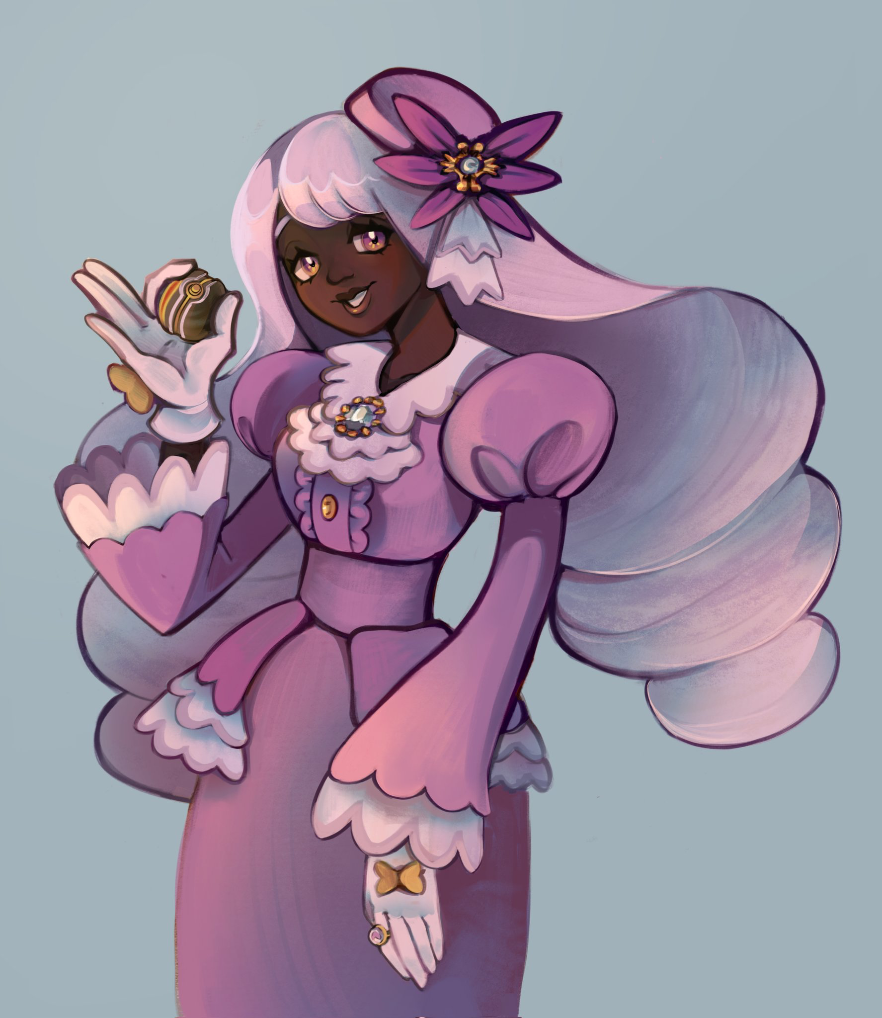 I think I unironically love her.I was VERY skeptical at first, but something about the color choice of her outfit mixed with her pastel bright purple hair contrasting super well with her dark skin, in addition to having a super beautiful outfit, it just grew on me until I embraced it fully.I love you Jacinthe! I love you, I love you, I love you!!!