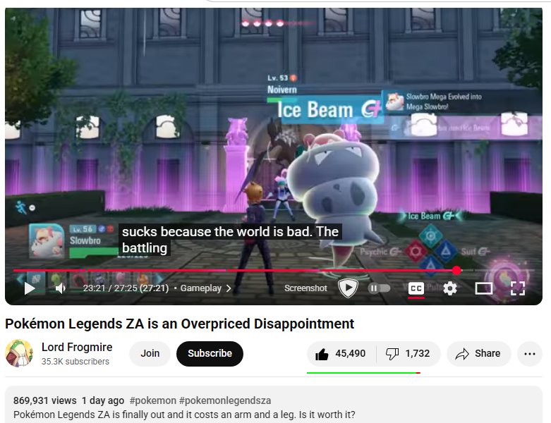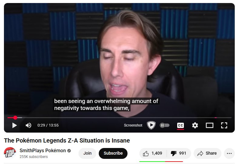 Kek even notorious harsh-critic of old Pokemon games, SmithPlays Pokemon, is getting dislike bombed for coming out to defend ZA