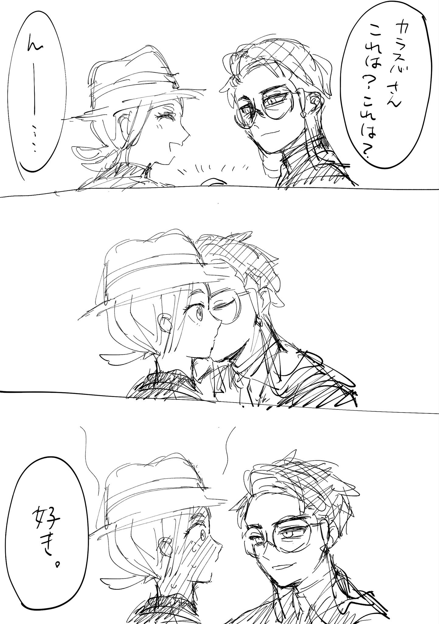 >>58466237He smells cologne on them one day and can't say anything but you can tell something's off with him. Or maybe it's right after the night that Corbeau stays.