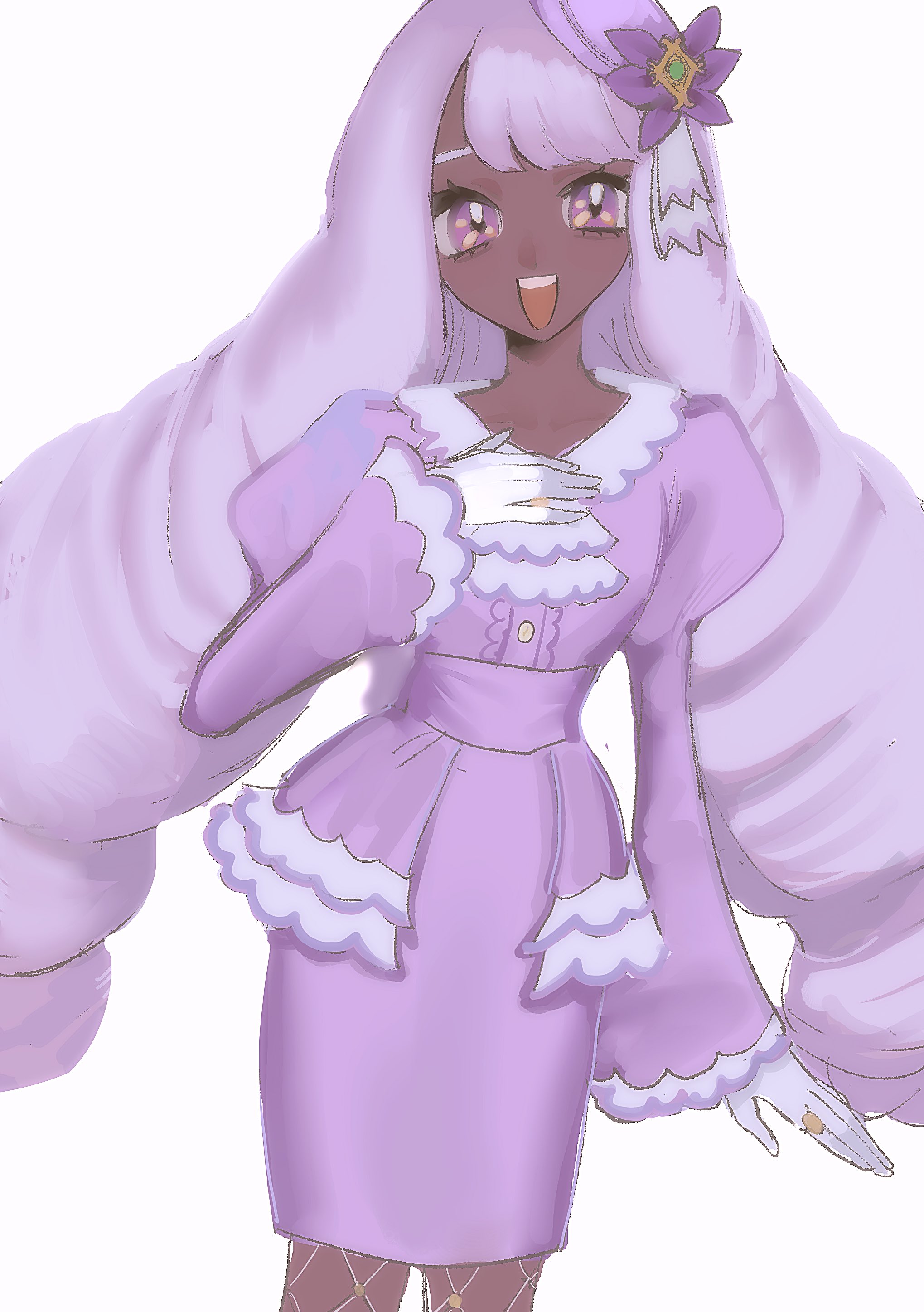 >>58472856>Whether you love it or hate it, the Jacinthe’s extremely dark, cool tone brown skin was intended to complement and contrast with her icy, pastel lilac dress, and vaguely lavender white hair"Intended" is the keyword here, because whoever designed her clearly did not understand how to actually use contrast very well. Just pumping that shit up to max doesn't make it complementary.
