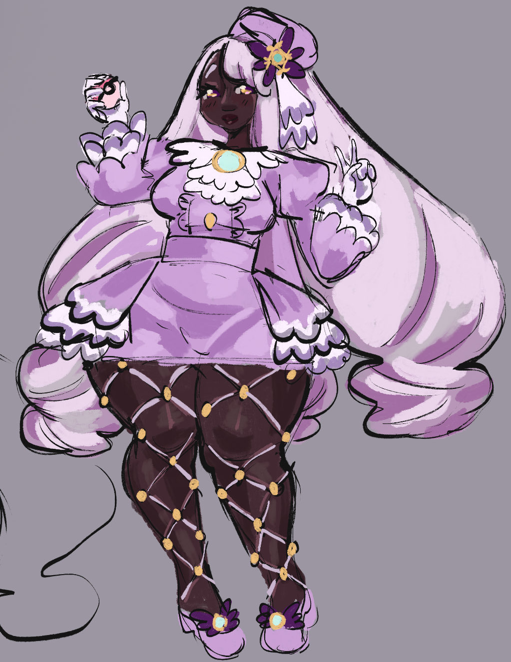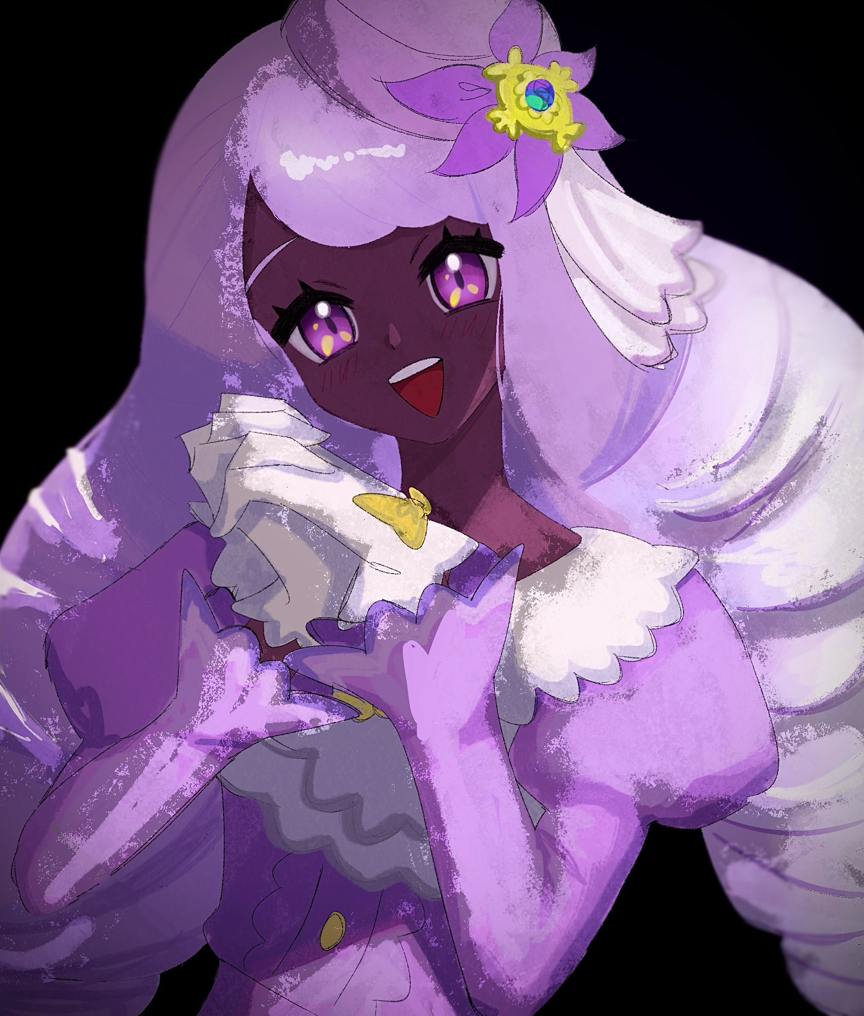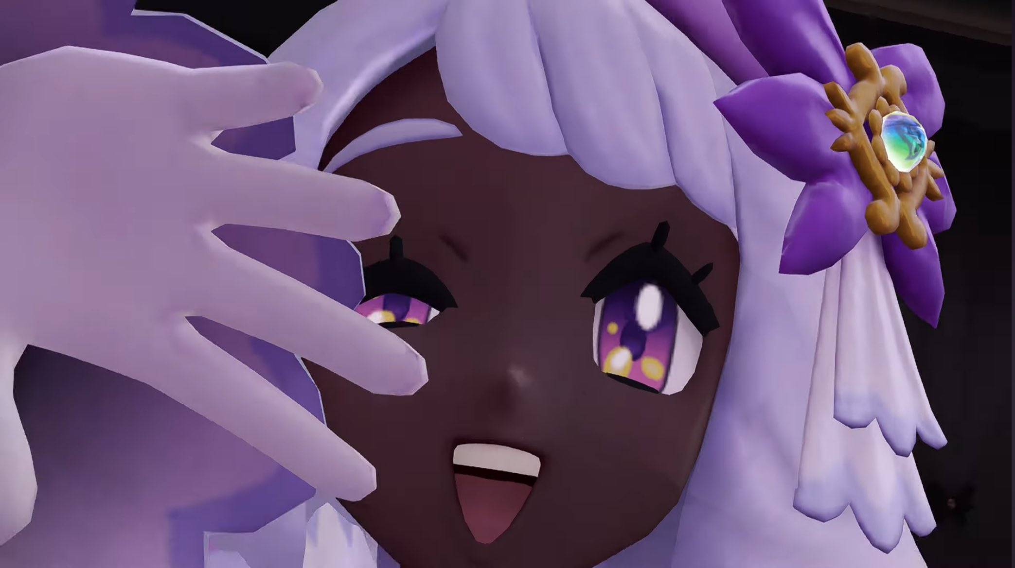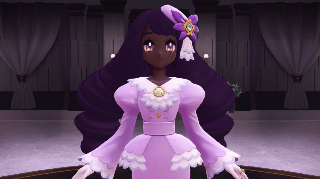 >>58472825>>58473138Can some make an edit where jacinthe’s hair is a darker purple and the flower pin is a lighter purple. I want to see what it looks like, because while most people complaining are just salty that a black girl mogs the fuck out of them. some people trying to argue on good faith do have a point that something about her looks off, even most of the issue is probably from game freak’s crappy lighting.