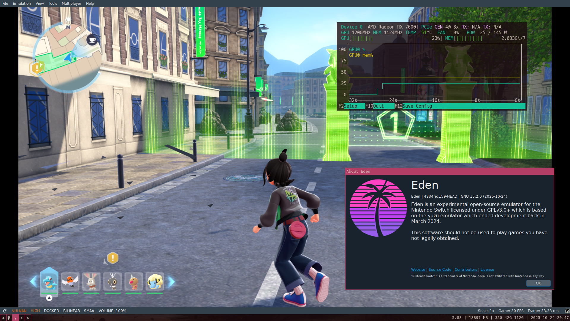 You Did It!!! Edition>WHICH EMULATOR?Ryubing 1.3.3: https://git.ryujinx.app/ryubing/ryujinx/-/releasesRyubing Canary: https://git.ryujinx.app/ryubing/canary/-/releasesEden v0.0.3-rc2 (later versions will have unplayable visual bugs)>FIRMWARE & KEYS?prodkeys dot netFirmware 20.5.0, Keys 20.3.0>I CAN'T GET PAST FLETCHLING!Several possible workarounds: set DRAM to 8 GB, spam A in cutscene, set from Vulkan to OpenGL, or use Eden until past cutscene then transfer save>I CAN'T OPEN GAME ON RYUBING?Remove update>KEEP CRASHING OVER & OVER AT SOME POINT?Try flushing shader cache>WEIRD GRID PATTERN?>>58455423>CHEATZhttps://gbatemp.net/threads/pokemon-legends-z-a-cheat-database.675579/Warning: BACKUP SAVES BEFORE USING; if there is an off switch for a cheat use it before saving & quitting.>Previous Thread>>58439487