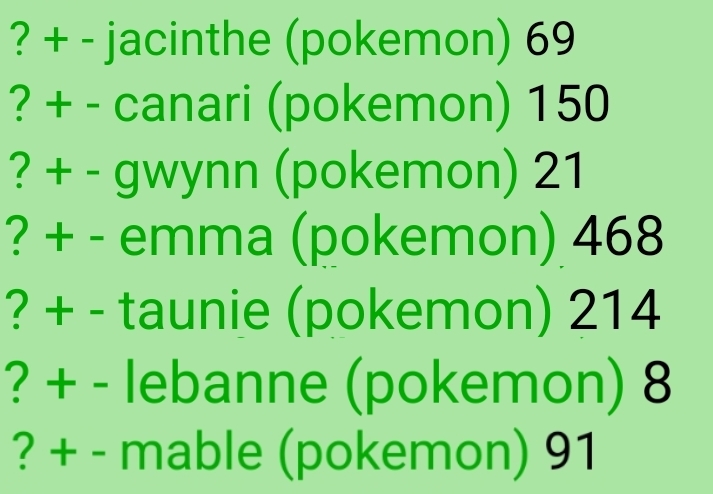 >>58479781I actually lol'd when she added zygarde to the tourney roster, great visual gag