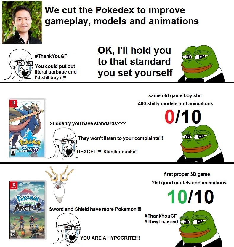 swsh was dogshit and the entire fucking board was up in flames over how many mons were cut, but this is fine?