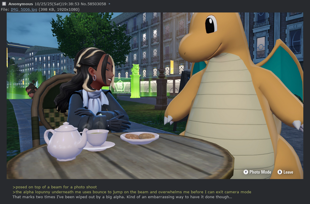 >>58506113Not that I'm not grateful for yet another shiny, but I just have this thing against trade evolution in general, I think it's really stupid, and way back when I first got into pokemon I never got to use the pokemon I wanted to because nobody to trade with. Later on in the ds era it was fine because it was free, but now with the switch it's basically pay 8 euros just to evolve a pokemon. And they fixed it in areas, but then de-fixed it in za>>58506132Luckily I have avoided multiple of the same shiny, for now