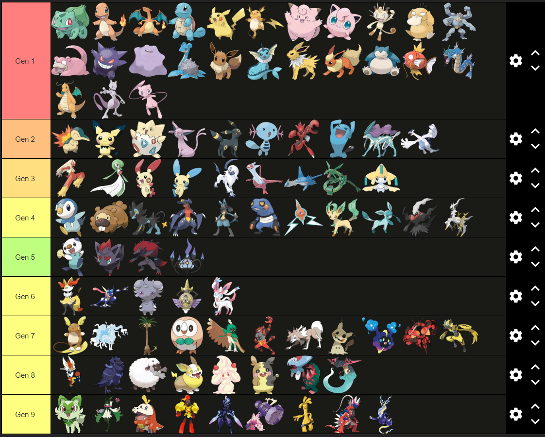(I haven't been following Pokémon as much since the Switch era, so I'm not too confident for Gens 8 and 9)