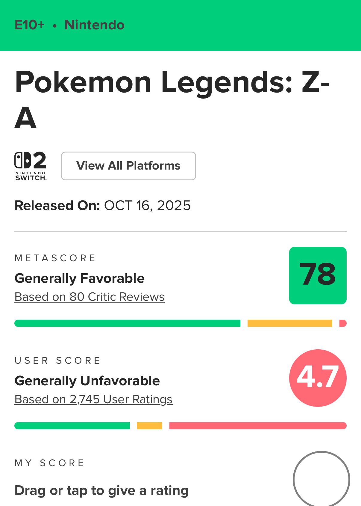 >>58517798Nothing to see here. Legends ZA is genuinely a 10/10 perfect game and these critics just so happen to believe that.