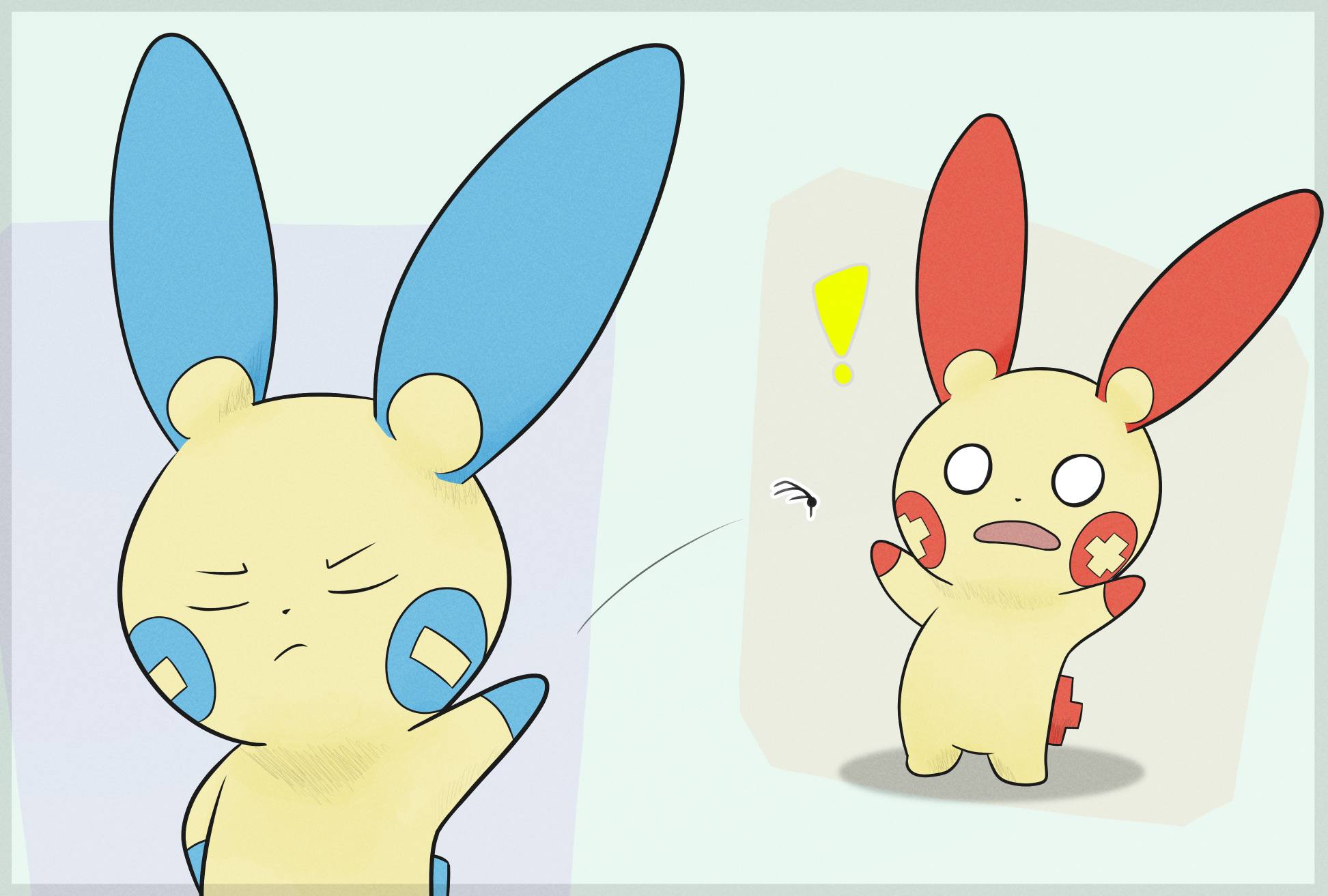 >>58525311>>58525408>>58522943>>58530521I like this concept that Plusle has opposite personality towards micros that Minun has, with Plusle being friendly and caring towards them while Minun is grumpy/indifferent and tends to be abusive towards them.
