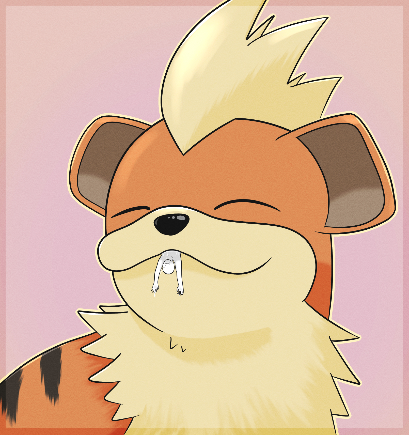 >>58522060A very happy Growlithe holding its very annoyed (chew toy sized) trainer in its mouth, with just his upper body sticking out between its lipsBonus points if you also draw him getting pinned and licked beforehand